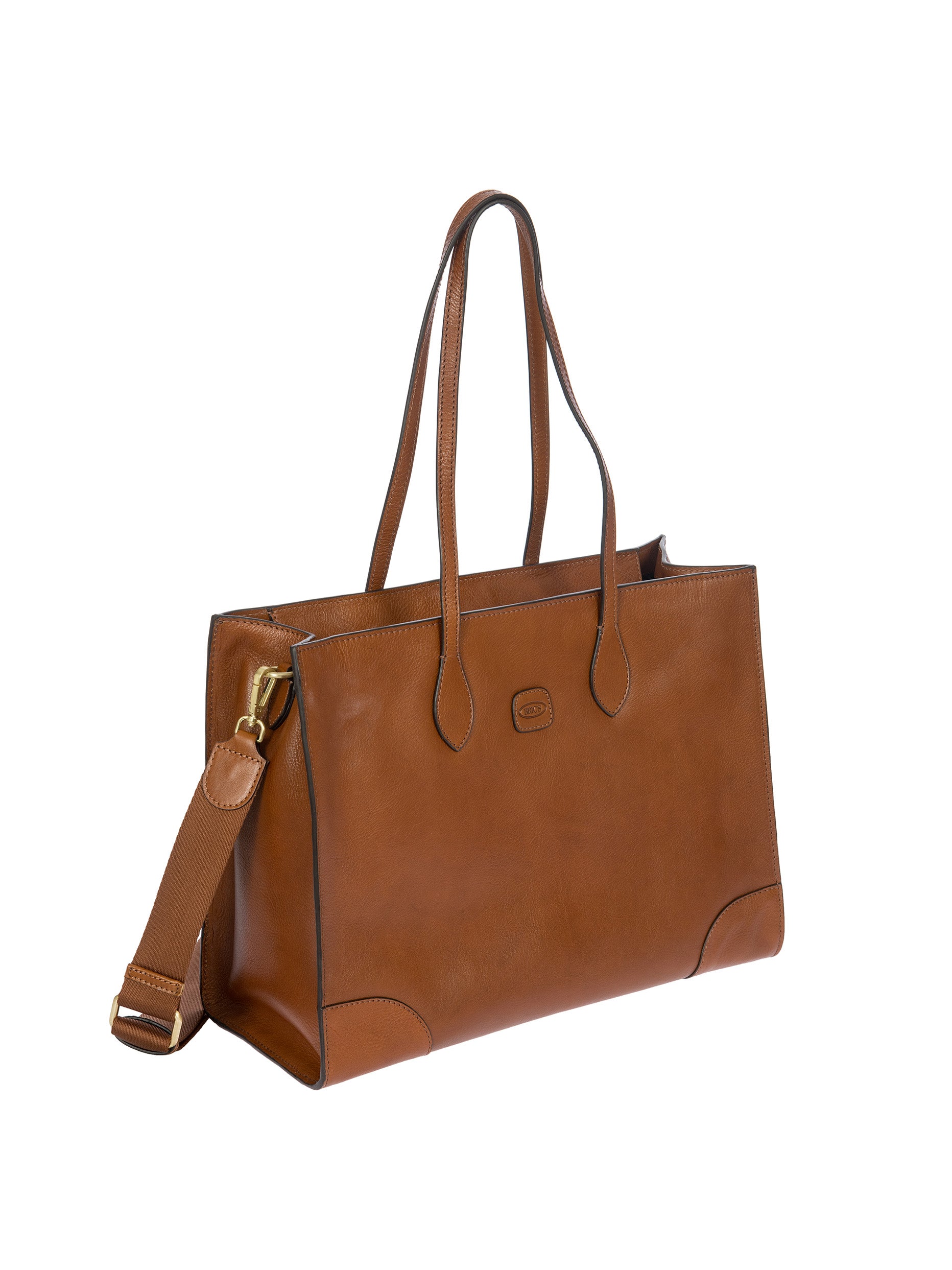 Each piece in Bric's Volterra Collection represents the natural elegance of the softest leather. Every stitching, the rib finish and the detailing of the brushed gold hardware lend an artisanal flavour to it. -Soft Nubuck lining, with laptop and tablet pockets
