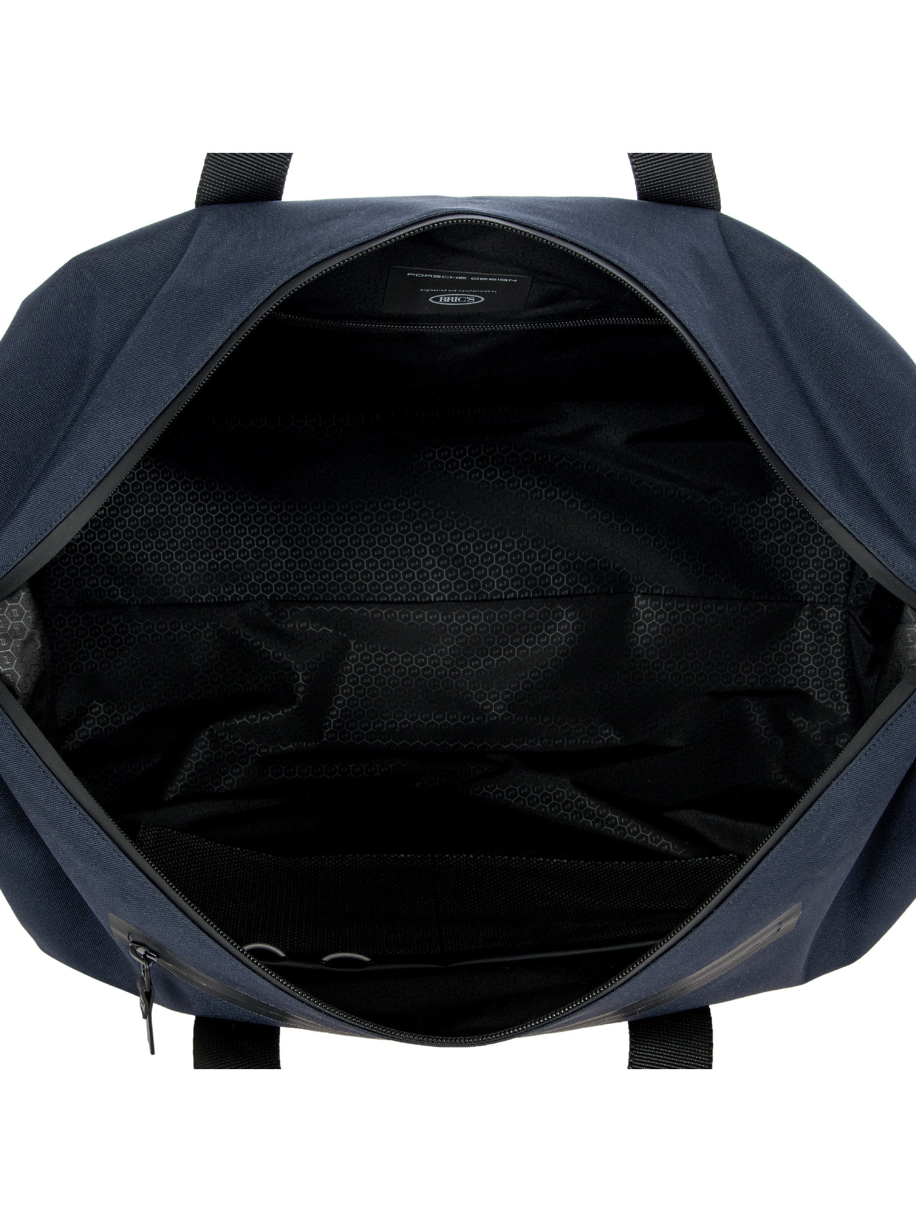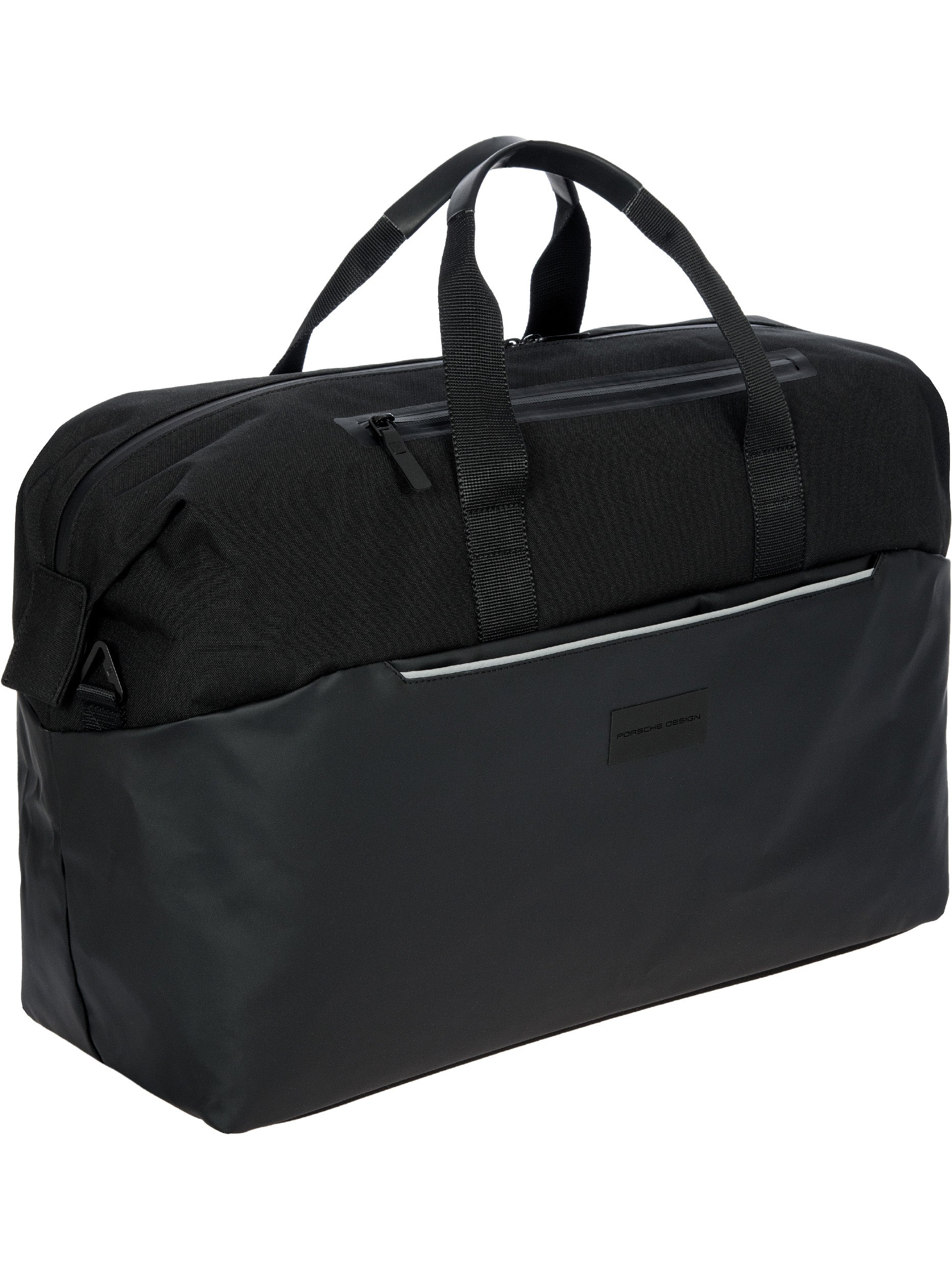 La fusion du style et de la durabilité, de la fonctionnalité et de la flexibilité : la série Porsche Design Urban Eco ne rentre dans aucune case, mais elle s'intègre parfaitement dans la vie quotidienne moderne. Le sac week-end léger Porsche Design Urban Eco convainc au premier coup d'œil par son design épuré : une combinaison de matériaux en polyester hydrofuge et en tissu enduit avec des fermetures à glissière laminées et des garnitures en métal noir. Au deuxième coup d'œil, les détails de ce grand sac week-end attirent l'attention : comme le patch du logo caoutchouté, le passepoil réfléchissant et l'imprimé inspiré des plaquettes de modèle Porsche avec les coordonnées de Zell am See, l'adresse du Studio F.A. Porsche. Les caractéristiques de confort bien pensées du sac ne sont pas immédiatement visibles, mais constituent des points forts à chaque fois que vous l'utilisez. Le compartiment principal avec fermeture à glissière à double sens comprend une poche à glissière supplémentaire et un organiseur professionnel, qui peut être agrandi si nécessaire. Deux poches supplémentaires sur le devant et une dragonne pour valise rigide à roulettes au dos, ainsi que la bandoulière réglable avec rembourrage d'épaule font de ce sac week-end le compagnon idéal pour les voyages en voiture et les séances d'entraînement. DÉTAILS : •Sac week-end léger dans un design épuré. •Mélange moderne de matériaux en polyester recyclé et polyuréthane. •Compartiment principal avec fermeture à glissière à double sens, poche supplémentaire et organiseur professionnel, extensible avec rabats latéraux. •Face avant munie de deux poches plaquées supplémentaires et élément réfléchissant. •Dos avec dragonne pour valise rigide à roulettes. •Bandoulière réglable avec rembourrage d'épaule.