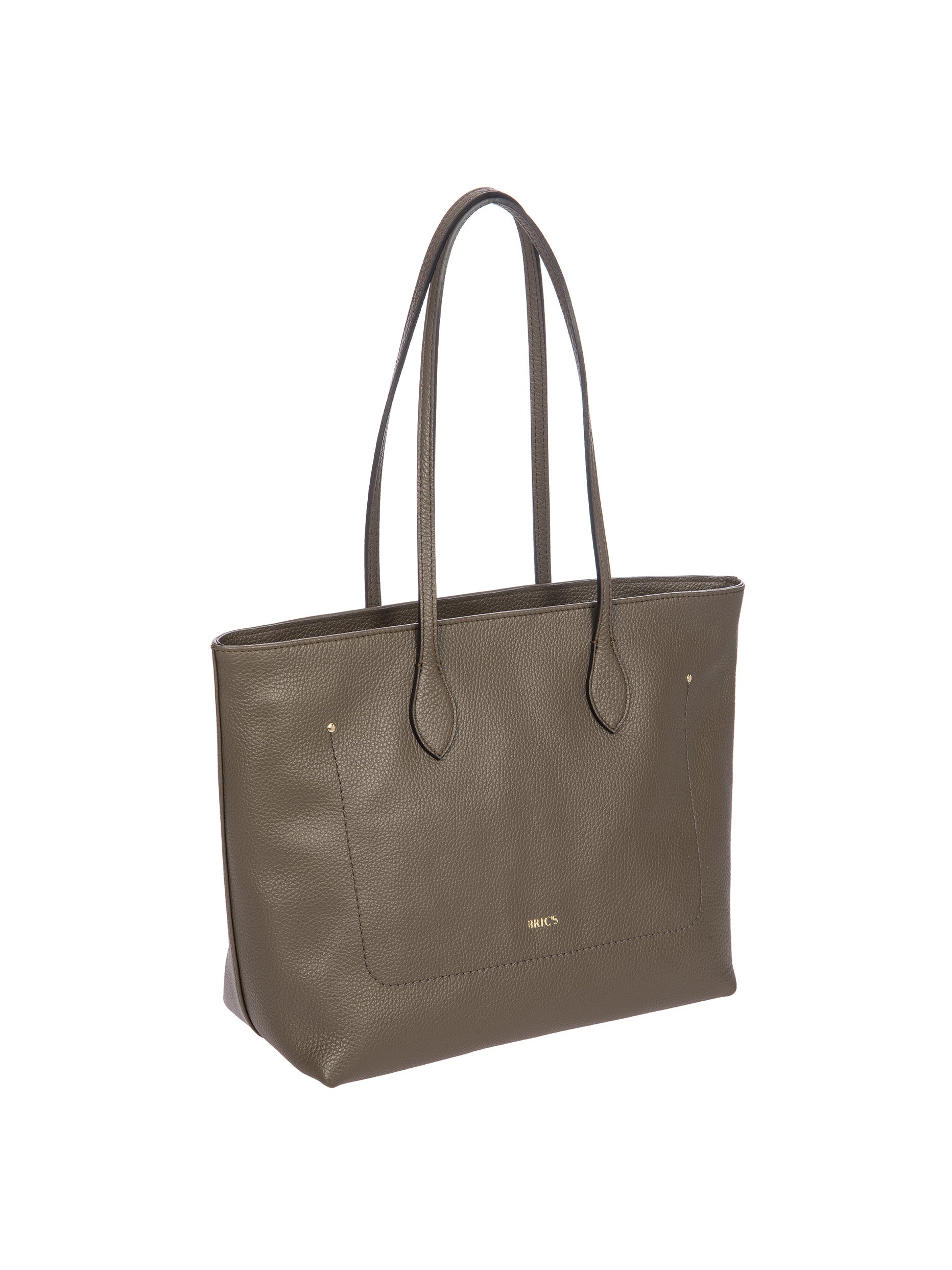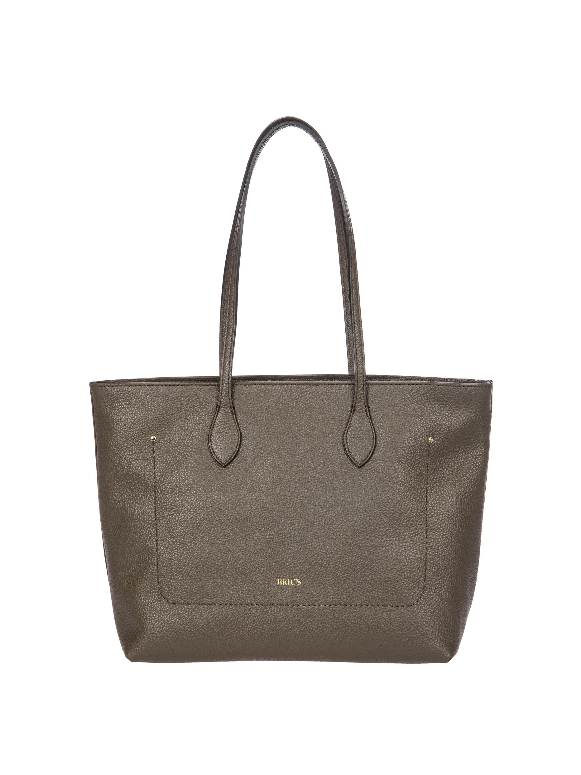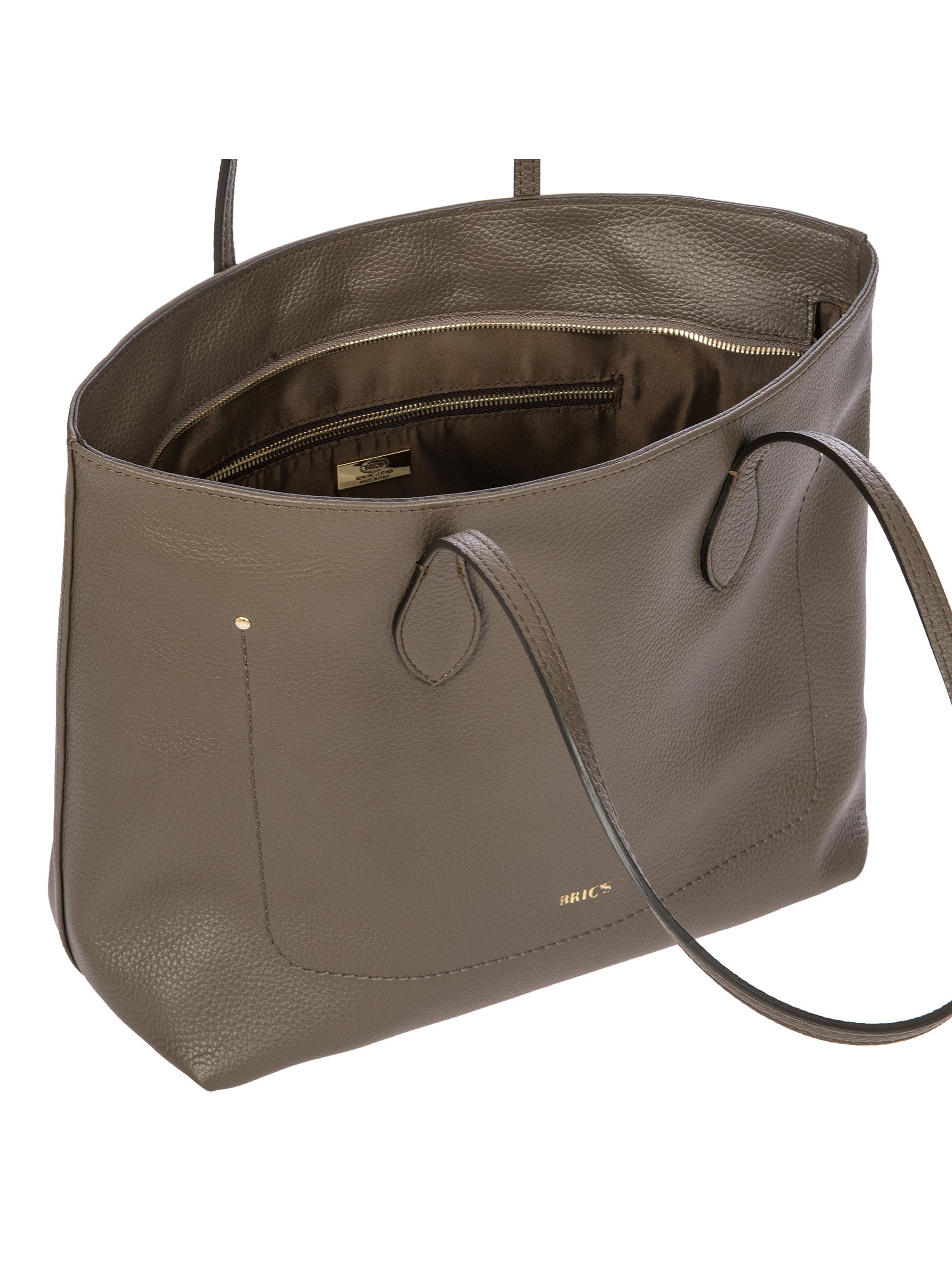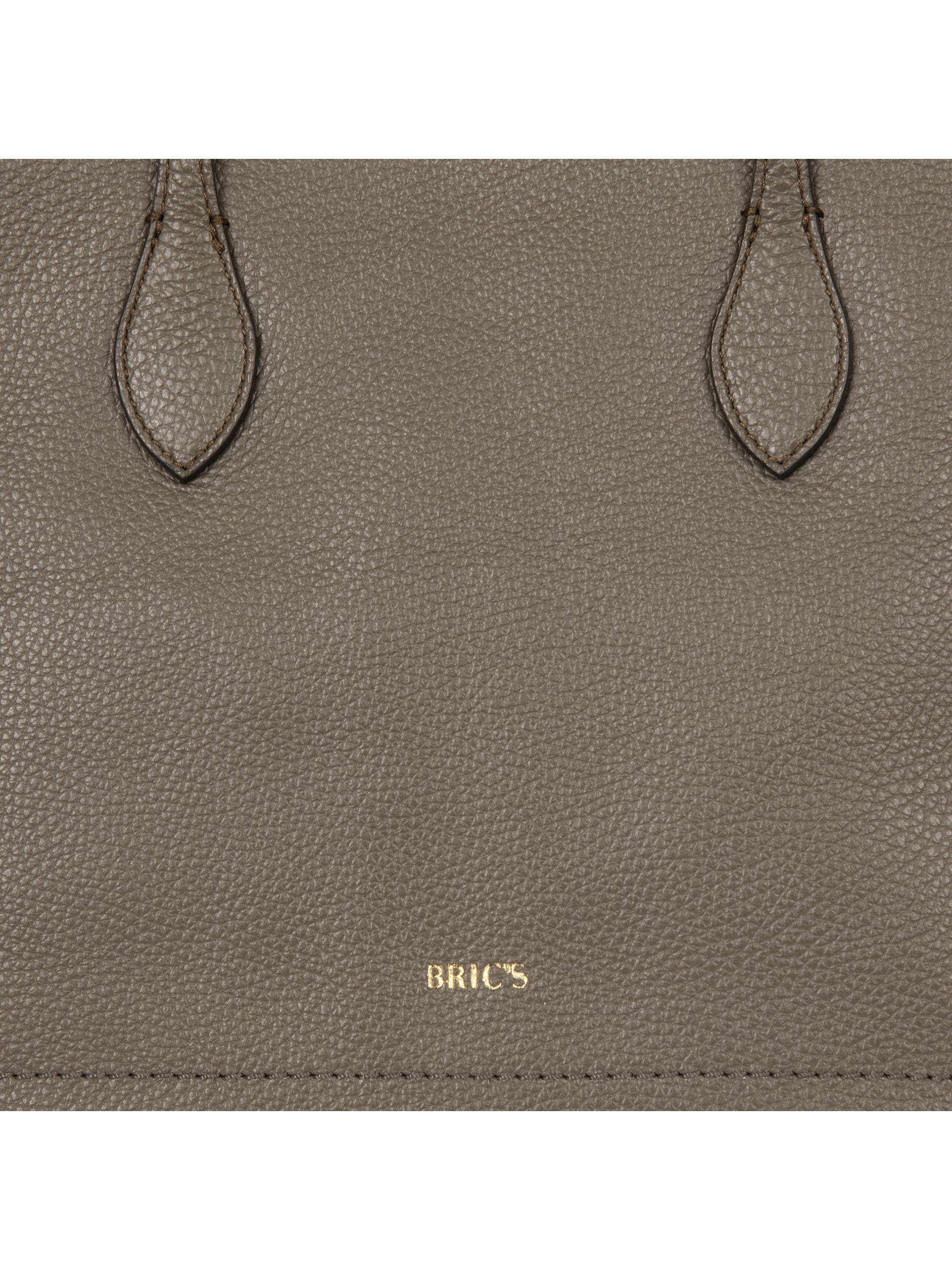 La Collezione Bric's Gondola è disegnata e prodotta interamente in Italia. -La borsa shopping realizzata in vera pelle è dotata di manici sottili e morbidi, da indossare a spalla, con elegante stampa del logo Bric's -Chiusura con zip -Tasche interne funzionali -Parti metalliche con finitura oro