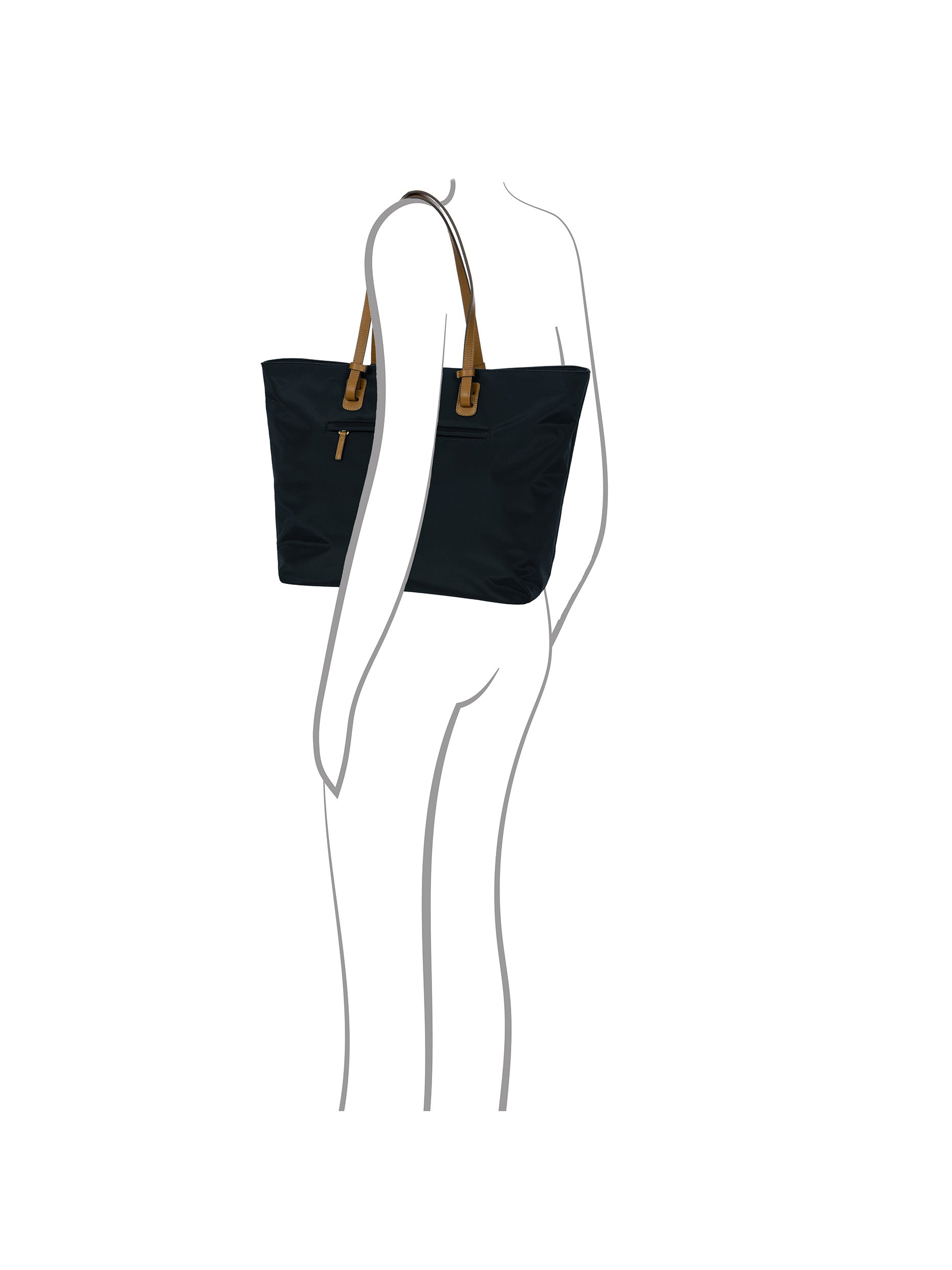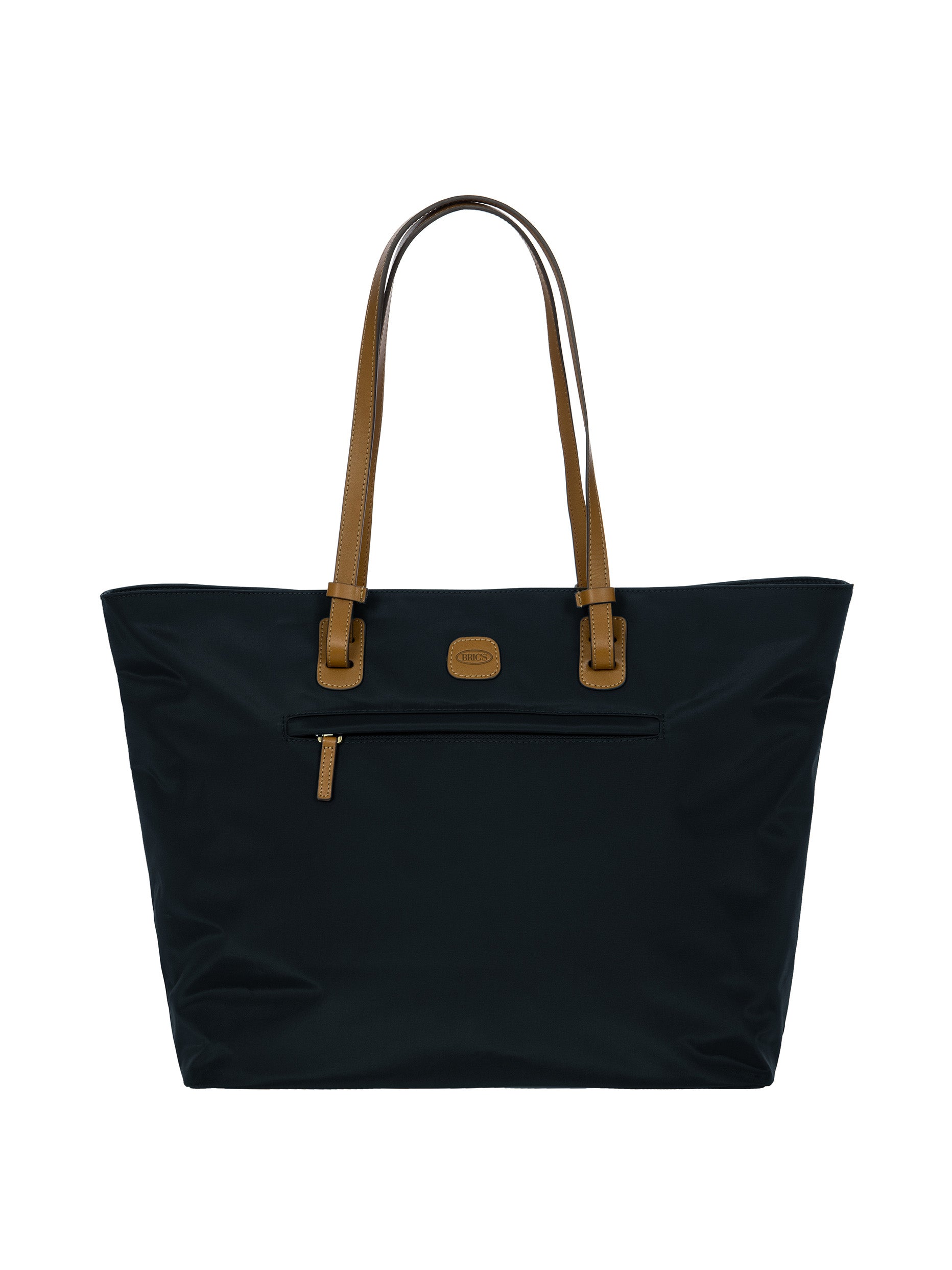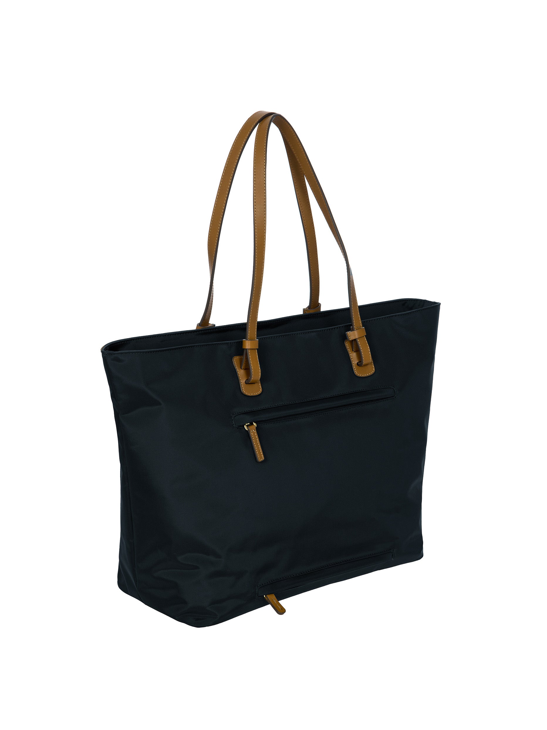 Part of our X-Collection, this daily traveller bag is made of a sturdy and water-resistant recycled fabric. With its reinforced bottom, padded laptop/tablet pocket, and trolley strap on the back, this bag is perfect for work and travel. This shoulder bag features soft and thin leather straps. It features two external zipped pockets - one on the front and one on the back - to keep all your essentials at hand. This versatile and functional bag is embellished by genuine leather details - a hallmark of Bric's.