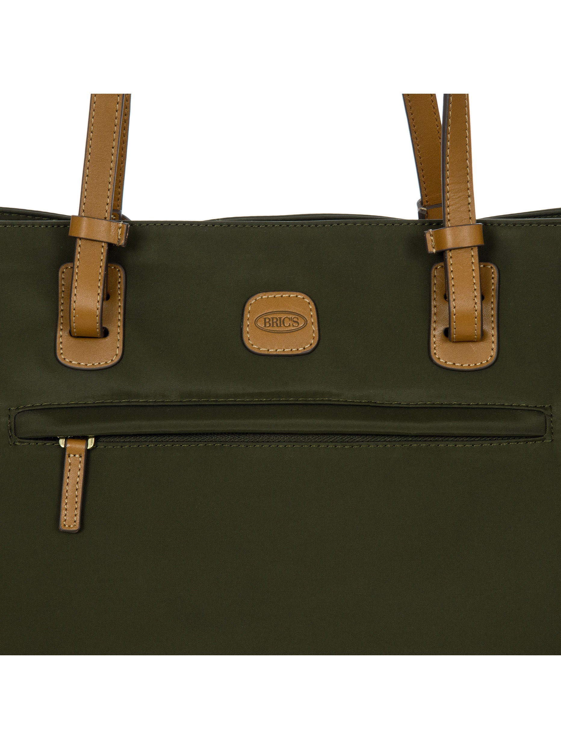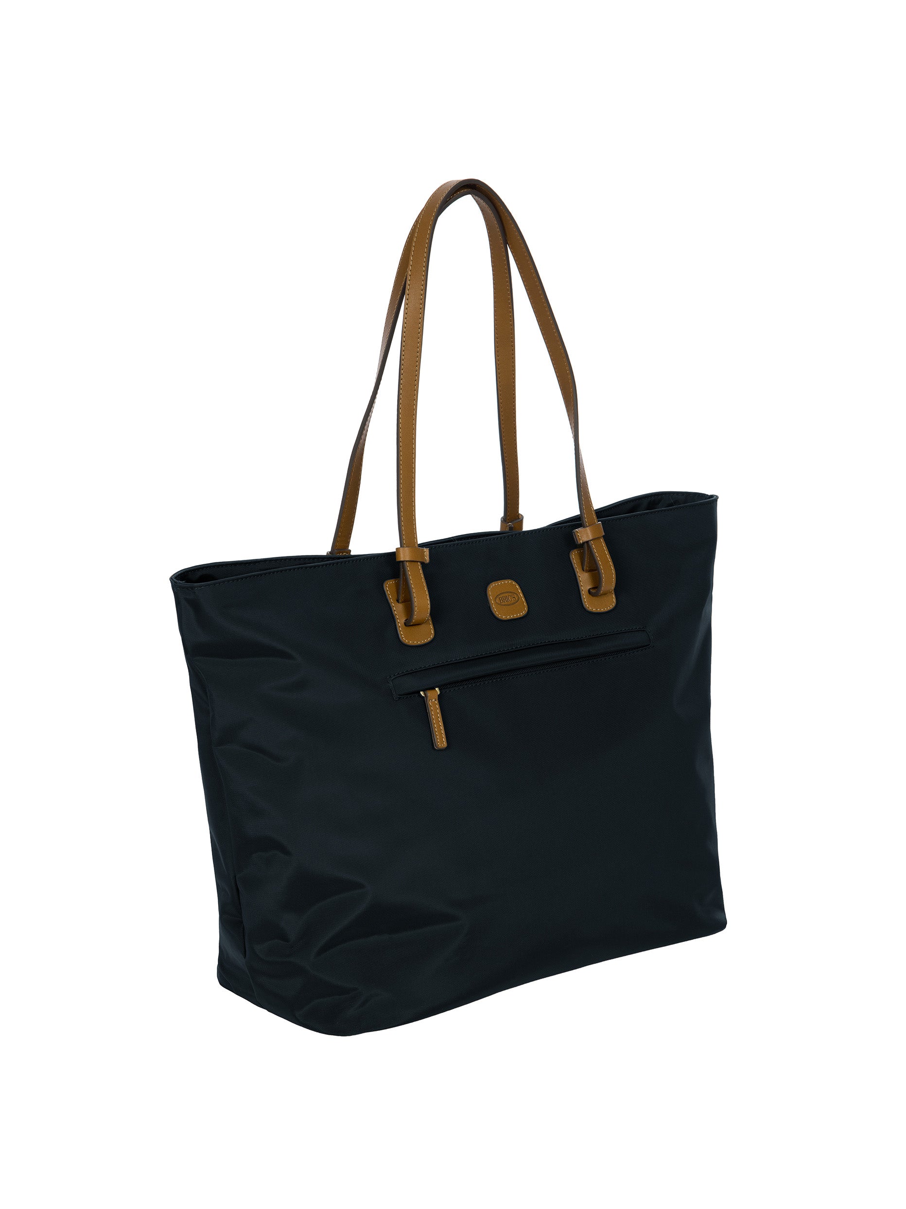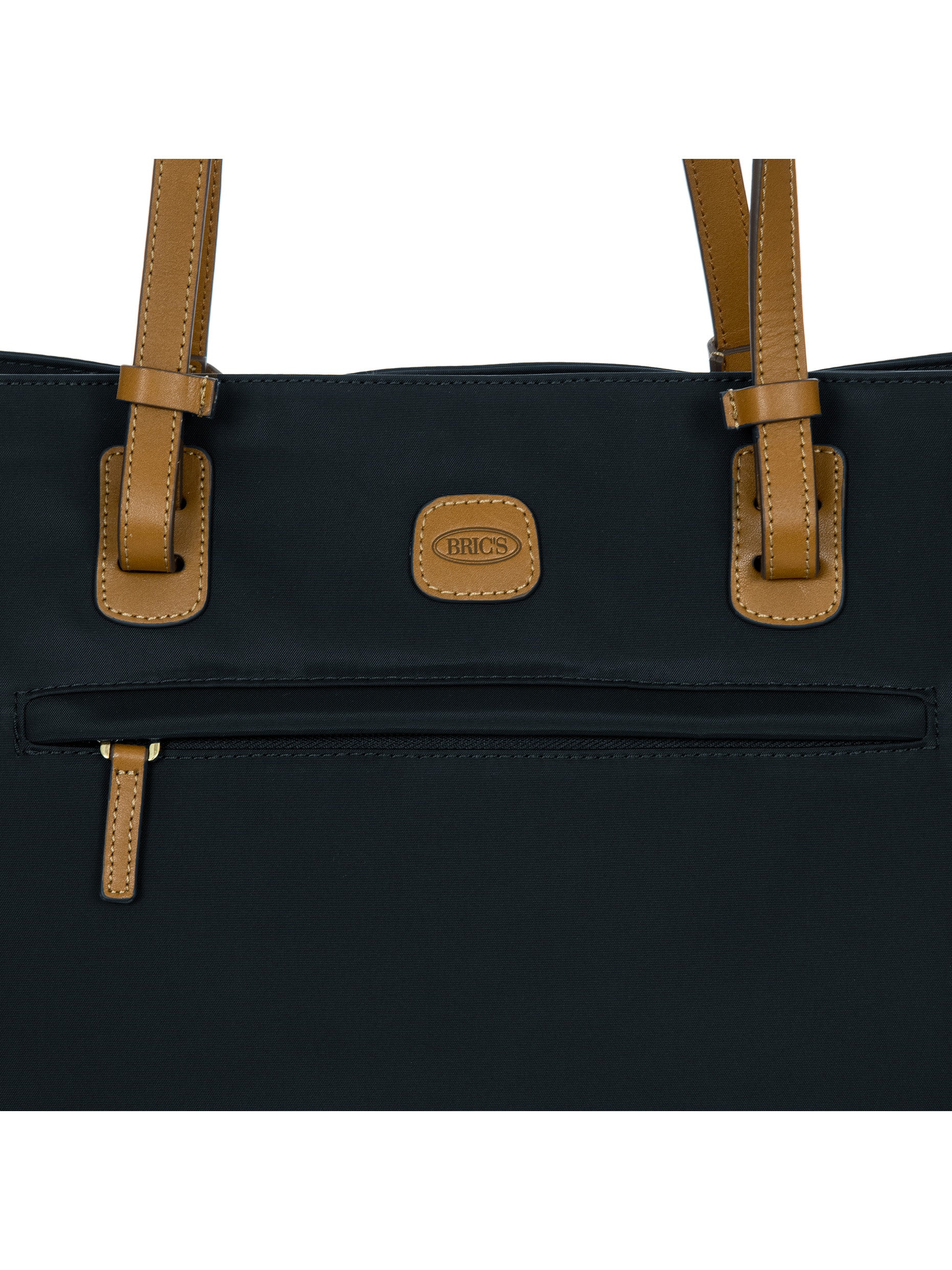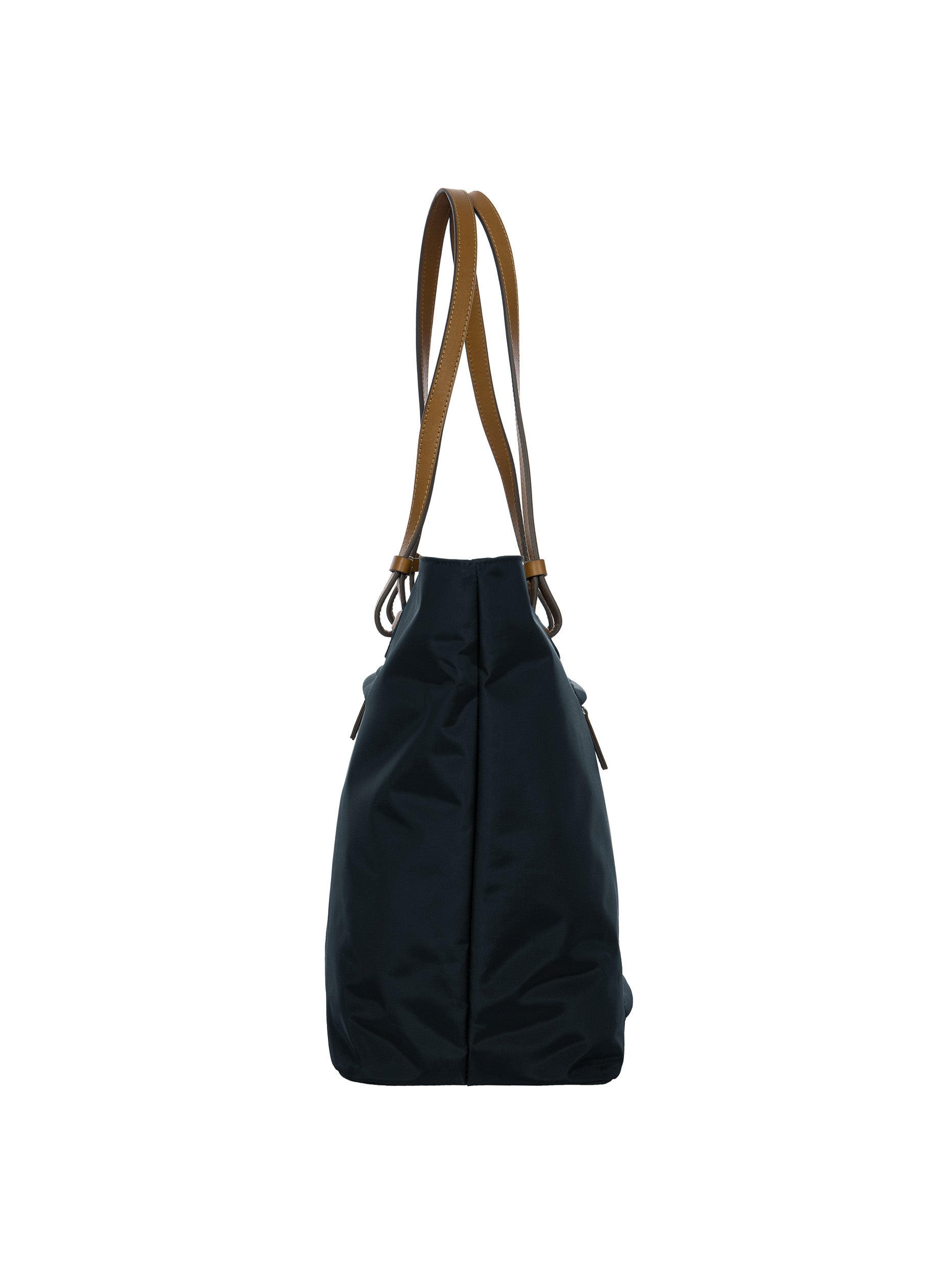 Part of our X-Collection, this daily traveller bag is made of a sturdy and water-resistant recycled fabric. With its reinforced bottom, padded laptop/tablet pocket, and trolley strap on the back, this bag is perfect for work and travel. This shoulder bag features soft and thin leather straps. It features two external zipped pockets - one on the front and one on the back - to keep all your essentials at hand. This versatile and functional bag is embellished by genuine leather details - a hallmark of Bric's.